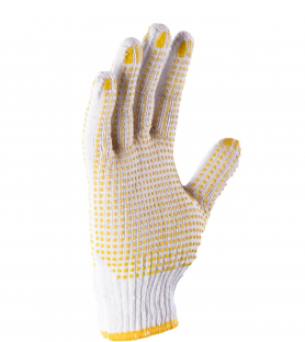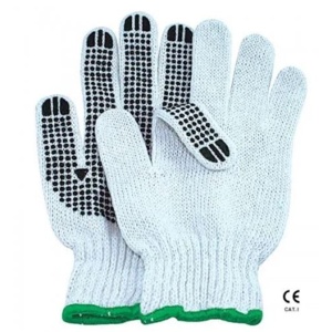 Manusi tricotate din bumbac si manseta elastica din poliester. Aplicatii punctiforme din PVC in palma si pe degete pentru o